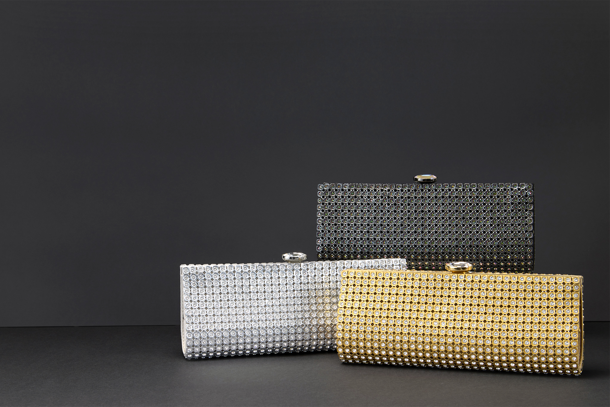 Discover this chic clutch featuring elegant, simpl Discover this chic clutch featuring elegant, simple lines adorned with shimmering mini crystals. Perfect for any occasion, it adds a touch of sophistication to your outfit while providing ample space for essentials.